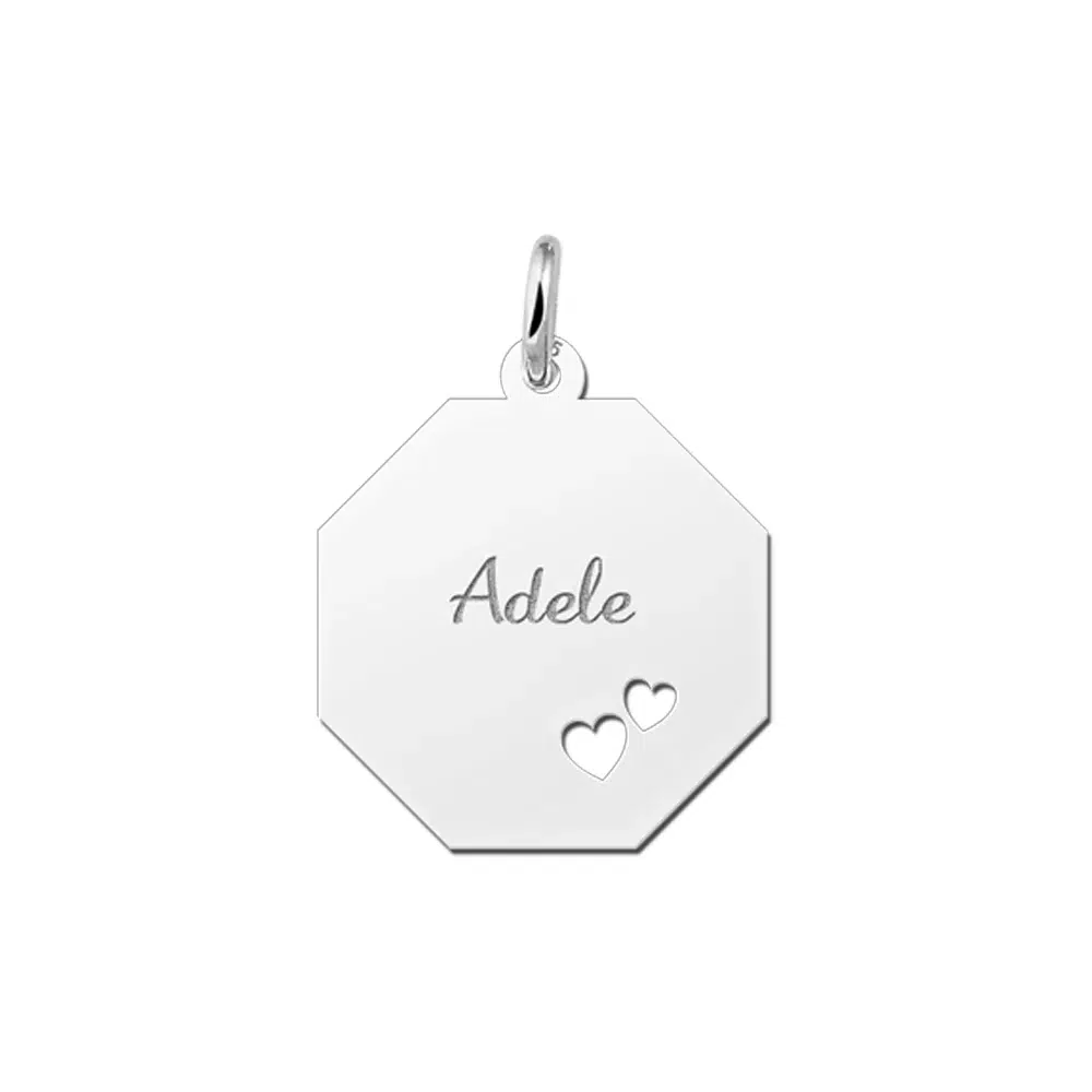 Deze graveerplaat met je naam is met twee harten bewerkt.