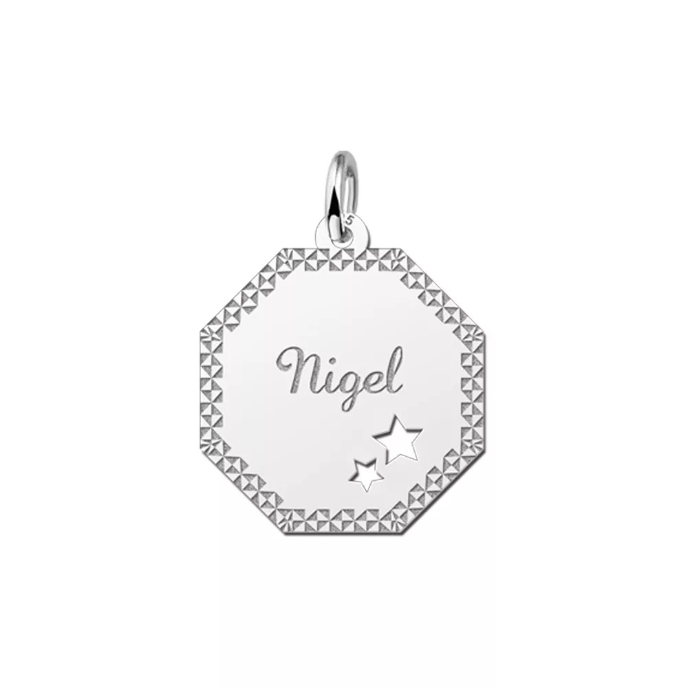 Deze graveerplaat met je naamgravure is met twee sterren bewerkt en een schitterende sierrand.