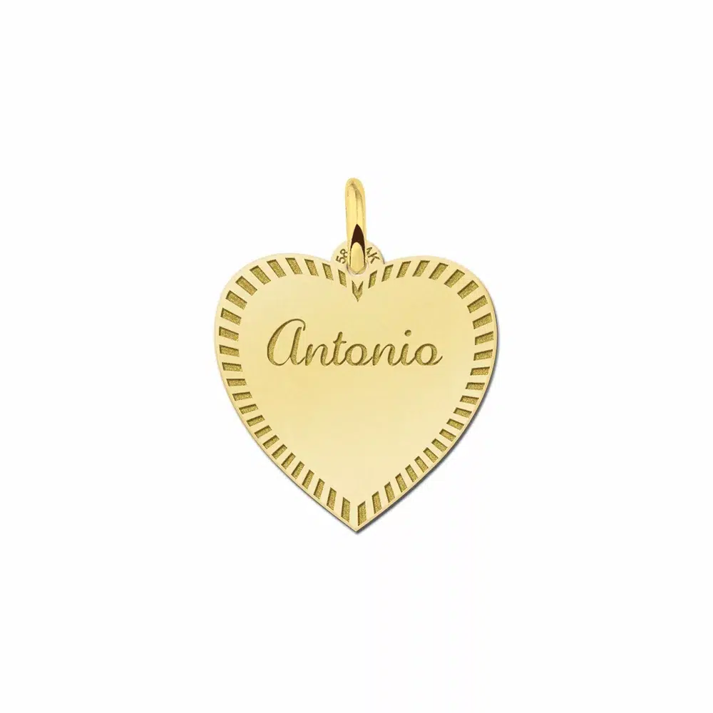 Het gouden hartje voor aan een ketting is ca. 19 x 19 mm groot en is voorzien van een mooie bewerkte rand.