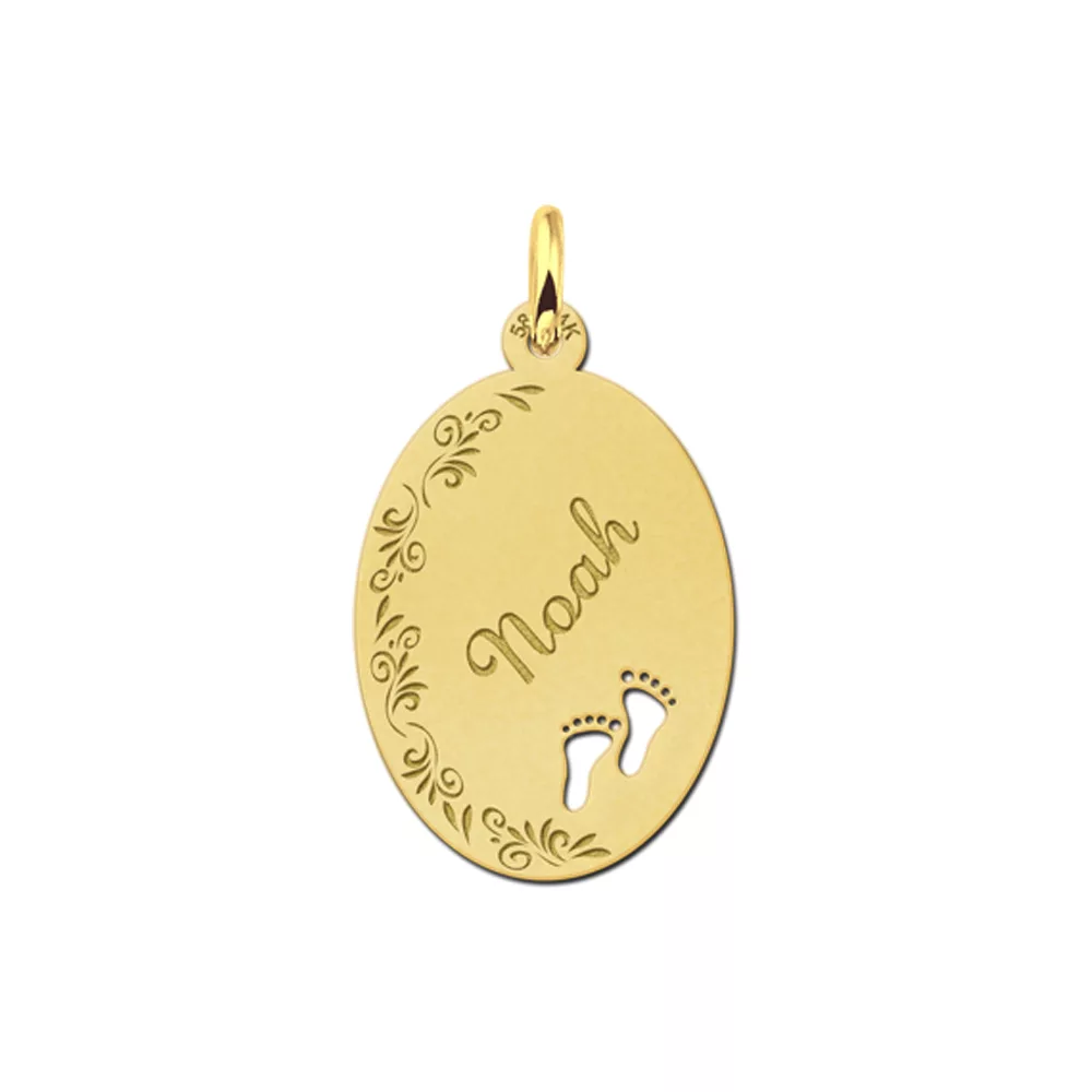 en dat maakt het juist zo subtiel ! De afmeting is 16 x 22 mm. Het gouden naamplaatje wat wij graveren is voorzien van twee voetjes en daarom is het wellicht een leuk idee om de naam van je kindje er in te laten graveren. Jouw naam naar keuze wordt er in sierlijke letters in gegraveerd. Vergeet niet een bijpassende 14 karaats gouden collier mee te bestellen !!