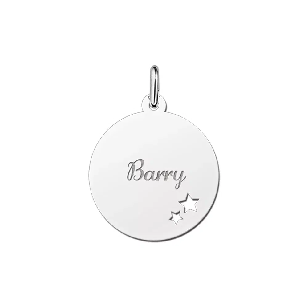 Dit plaatje met je naam is met twee sterren bewerkt. Fantastisch om door ons hier de naam van een dierbare in te laten graveren. De naam van je dierbare samen met twee sterren in jouw plaatje met jouw of zijn/haar naam erin. Op die manier is jouw gekozen plaatje met naam altijd dicht bij je hart. Uiteraard is het ook leuk om dit plaatje van zilver met naam cadeau te geven aan een dierbare. Bestel er wel een bijpassende ketting bij om het set compleet te maken.