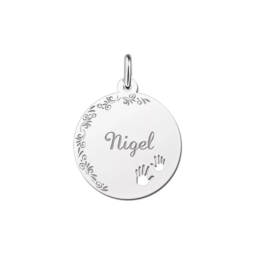 Het zilveren plaatje voor je naam is rond en is ca. 19 x 19 mm groot.