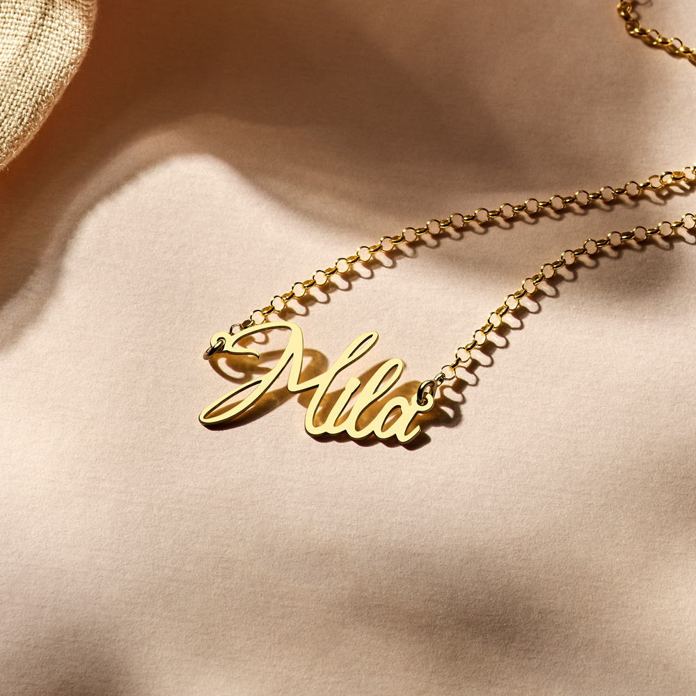 Een nieuwe naamketting met een gebogen lettertype. Volg de trend en vereeuwig je naam. Wil je de ketting cadeau geven? Dat komt mooi uit! Je ontvangt deze namelijk in een mooi sieradendoosje.