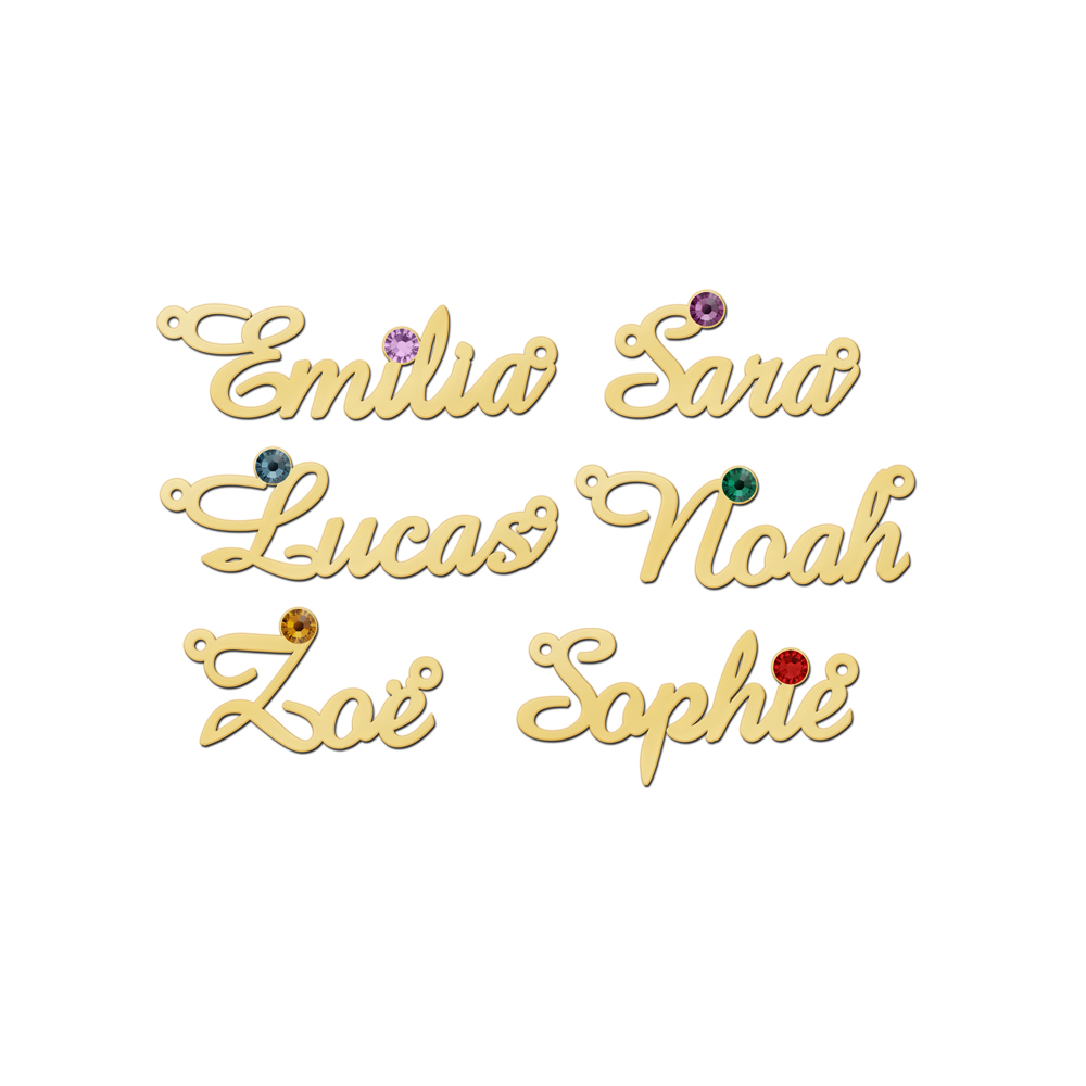 Deze vergulden naamketting kan gepersonaliseerd worden met een geboortesteen. Kies hier jouw geboortemaand.