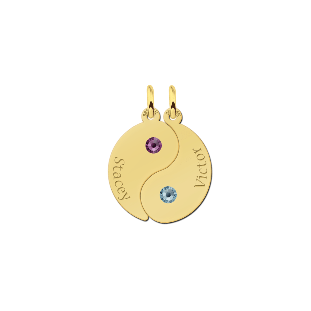 Het is daarom prachtig om elkaars naam met elkaars geboortesteen te dragen in deze vriendschapshanger van 14 karaats goud.