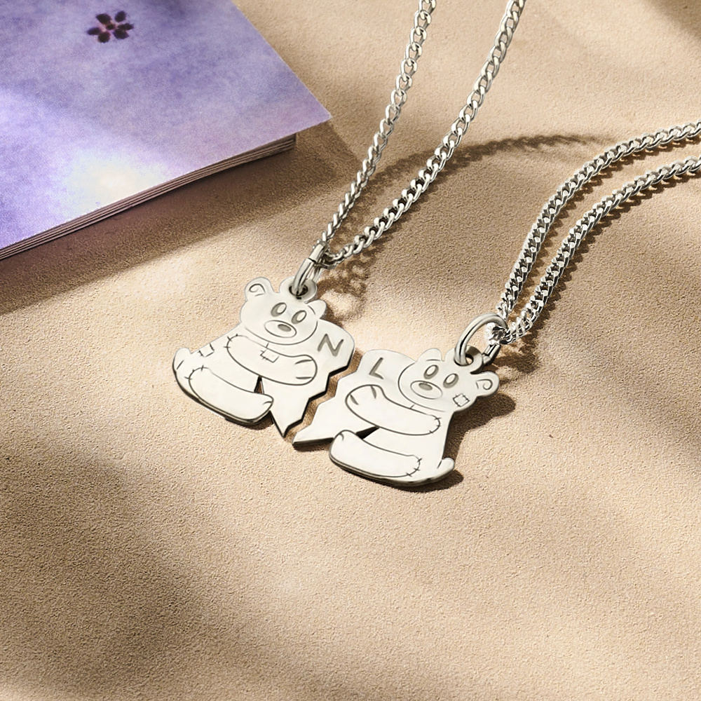 Een schattige 925 Sterling zilveren vriendschapshanger met twee beertjes welke je kunt personaliseren met een letter. Een losse hanger is 16 mm x 13 mm groot en 0,7 mm dik. Je kunt de bff hanger zowel met als zonder ketting bestellen. Je kunt kiezen uit diverse kettinglengten en –soorten. Je ontvangen de zilveren vriendschapsketting in een smaakvol sieradendoosje.