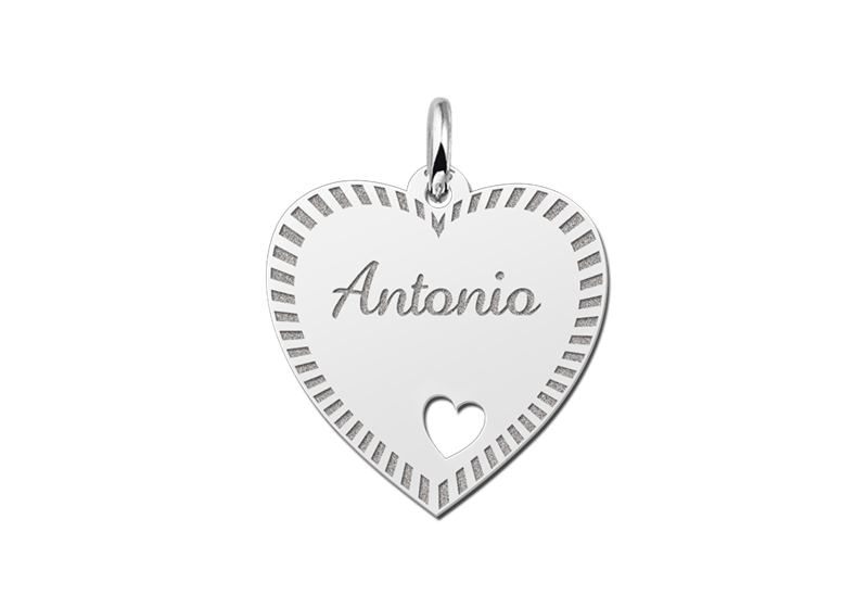 Het zilveren graveerplaatje hart is ca. 19 x 19 mm groot en is omlijst met een sierlijke rand. Het graveerplaatje wordt uiteraard voorzien van de naam van jouw keuze en een klein hartje. De naam wordt in sierlijke letters gegraveerd. Vergeet niet een bijpassende ketting mee te bestellen. Snelle en gratis levering!