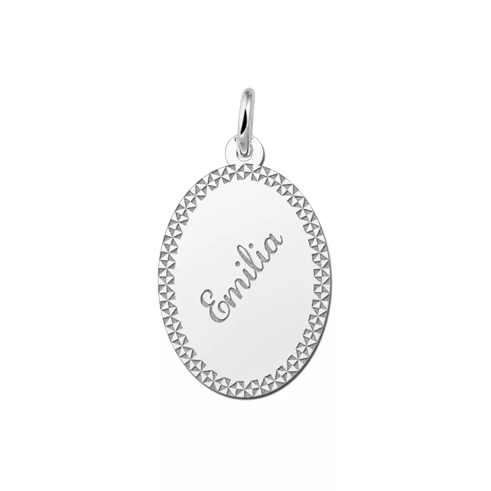 Wat een mooie zilveren hanger voor je naam in te laten graveren, met een schitterende sierrand is dit!
