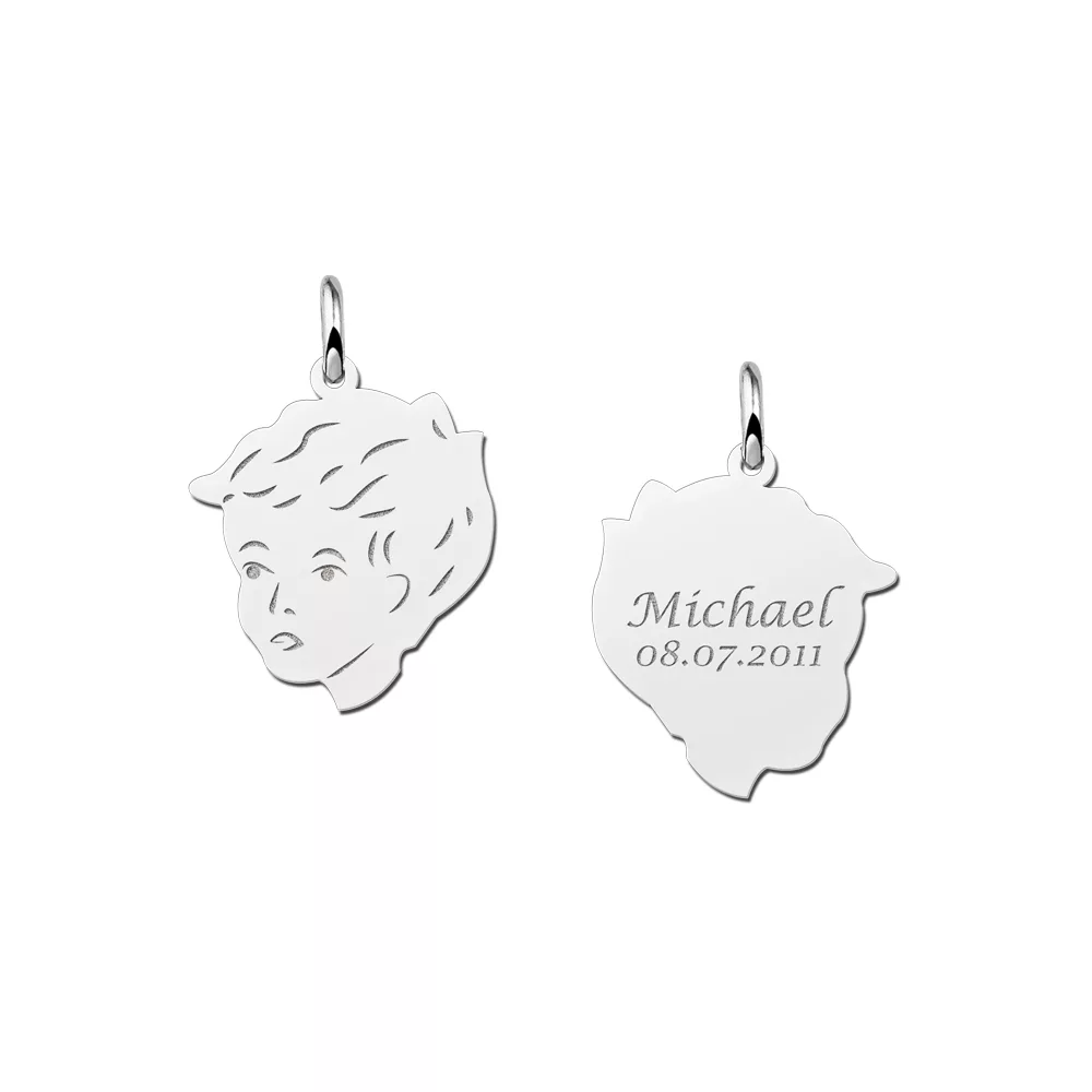 Deze moeder kind hanger heeft een vorm van een jongens kinderkopje zilver. Zo draag je jouw kind altijd dicht bij je. De achterkant kan worden gegraveerd met de naam en de geboortedatum van het kind. De hanger kan worden gepersonaliseerd met 2 x 12 tekens. De hanger heeft een afmeting van 17 x 18 mm en een dikte van 0,7 mm. Je kan ook kiezen voor een bijpassende ketting, die wij in verschillende kettinglengtes aanbieden. Wil jij dit sieraad als cadeau geven? Wij leveren alle sieraden in een mooie geschenkdoos.