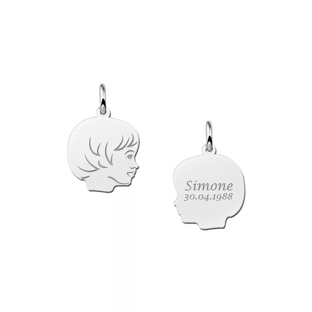 Deze moeder kind hanger heeft de vorm van het kinderkop van een meisjes. De zilveren hanger met kinderkopjes kan gegraveerd worden met een datum en naam. In dit voorbeeld kunnen maximaal 2 x 12 tekens worden gegraveerd. De afmetingen van de hanger zijn 14 x 14,5 mm met een dikte van 0,7 mm. Natuurlijk kan je ook kiezen voor een van onze verschillende type kettingen die bij de hanger past. Hier kan je ook kiezen tussen de lengtes 38 – 42 cm en 45 – 50 cm. Wil je de ketting cadeau geven? Dat komt mooi uit! Je ontvangt deze namelijk in een mooi sieradendoosje.