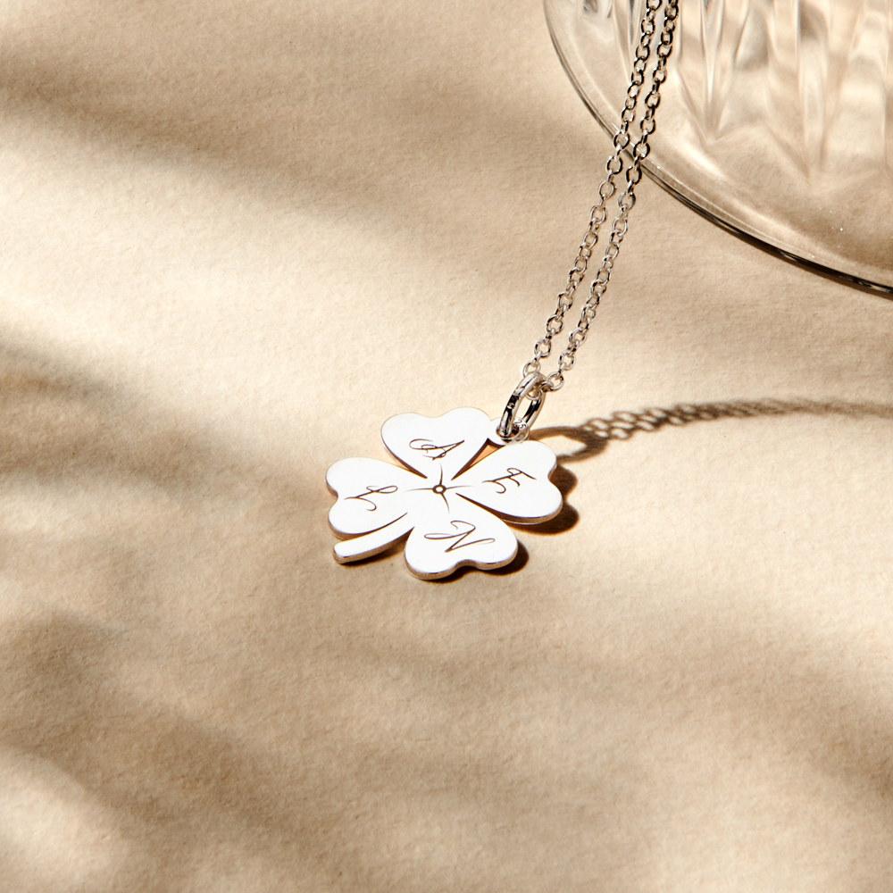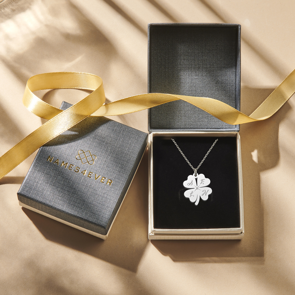 Een klavertje vier is het teken van geluk. Het zou je ook geluk moeten brengen. Vereeuwig tot 4 personen met hun initialen. Wil je de ketting cadeau geven? Dat komt mooi uit! Je ontvangt deze namelijk in een mooi sieradendoosje.