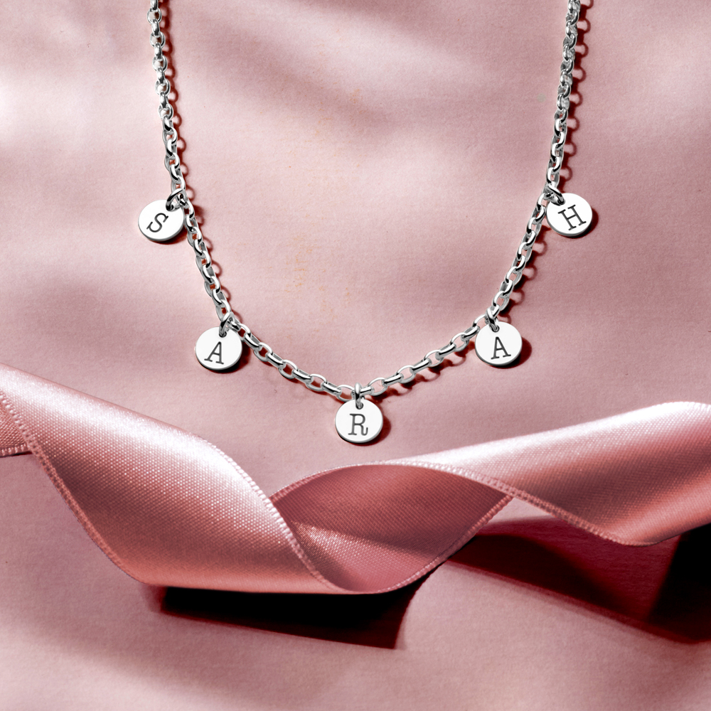 Onze naamketting van 925 Sterling zilver kan worden ontworpen met 8 letters. De ketting kan perfect alleen of in combinatie worden gedragen.