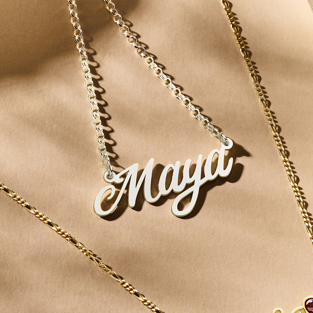 De nieuwe trend is handgeschreven naamkettingen. De Maya naamketting is gemaakt van stijlvol handschrift.
