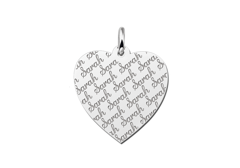 Het zilveren graveerplaatje hart is ca. 19 x 19 mm groot en wordt voorzien van de naam naar keuze. De naam wordt herhaaldelijk in sierlijke letters gegraveerd. Dit geeft een moderne twist aan de graveerplaat.Vergeet niet een bijpassende ketting mee te bestellen. Snelle en gratis levering!