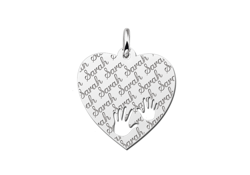 Het zilveren graveerplaatje hart is ca. 19 x 19 mm groot, met baby handjes en wordt voorzien van de naam naar keuze. De naam wordt herhaaldelijk in sierlijke letters gegraveerd. Dit geeft een moderne twist aan de graveerplaat.Vergeet niet een bijpassende ketting mee te bestellen. Snelle en gratis levering!