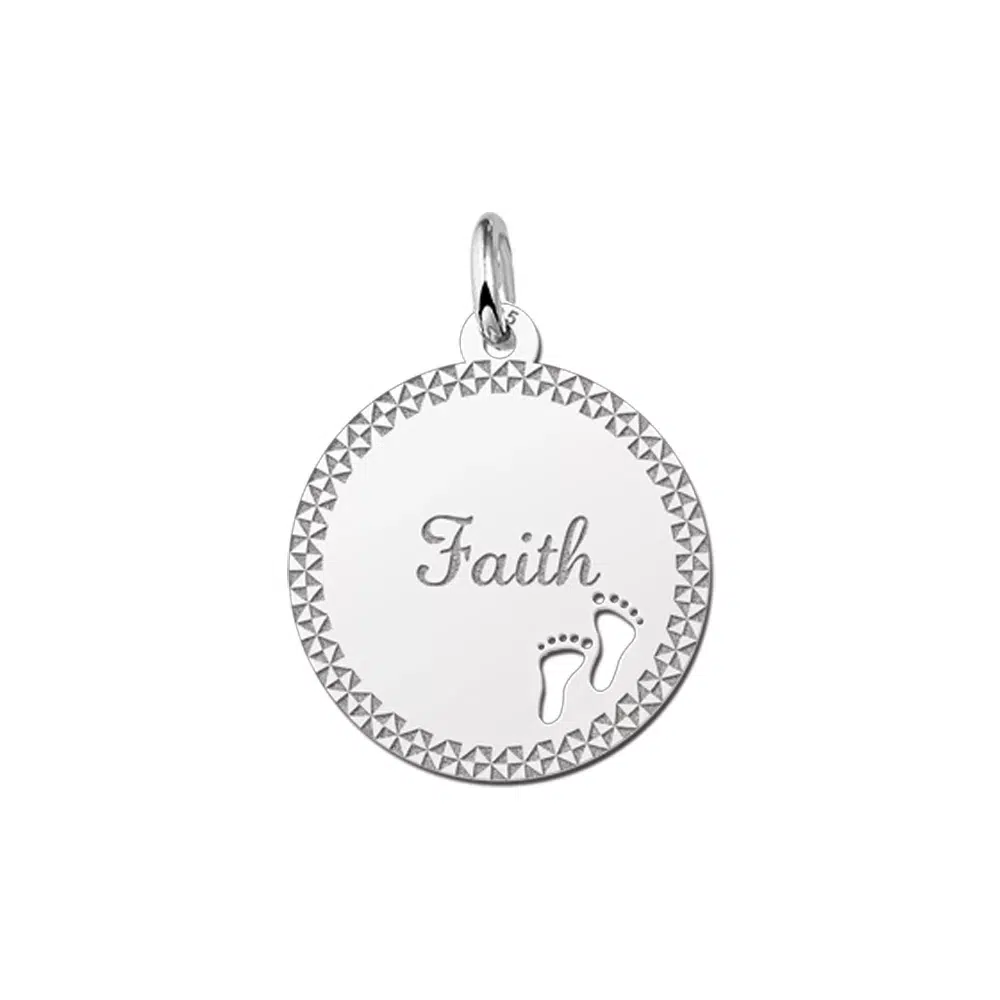 Dit zilveren plaatje is rond en is ca. 19 x 19 mm groot en heeft als afwerking een elegante sierlijke rand.