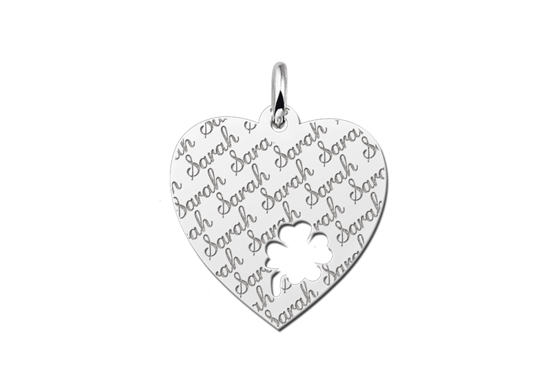 Het zilveren graveerplaatje hart is ca. 19 x 19 mm groot, met een kalvertje vier en wordt voorzien van de naam naar keuze. De naam wordt herhaaldelijk in sierlijke letters gegraveerd. Dit geeft een moderne twist aan de graveerplaat.Vergeet niet een bijpassende ketting mee te bestellen. Snelle en gratis levering!