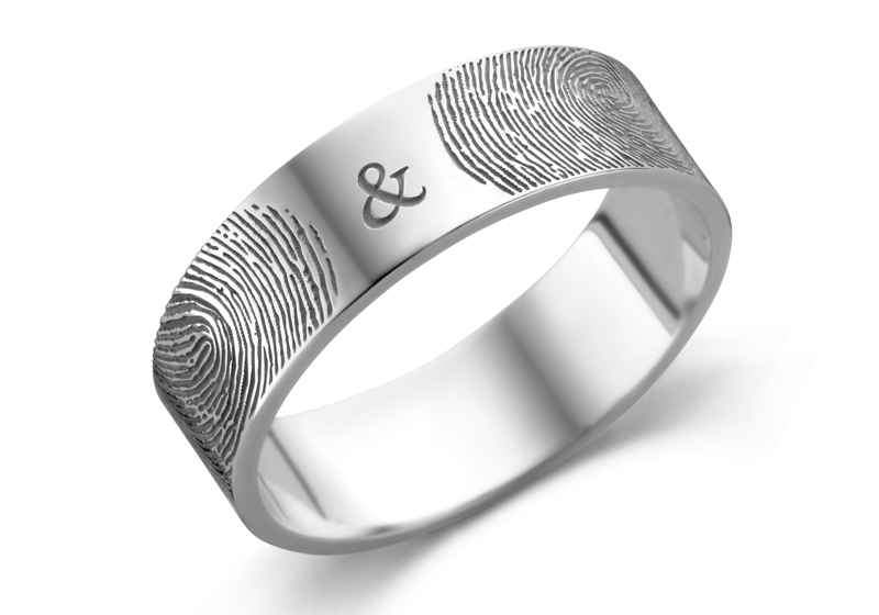 Een ring met twee vingerafdrukken dieverbindt.. Bovendien is deze ring, waarop twee vingerafdrukken gegraveerd zijn, net zo speciaal als jij en je dierbare zijn.