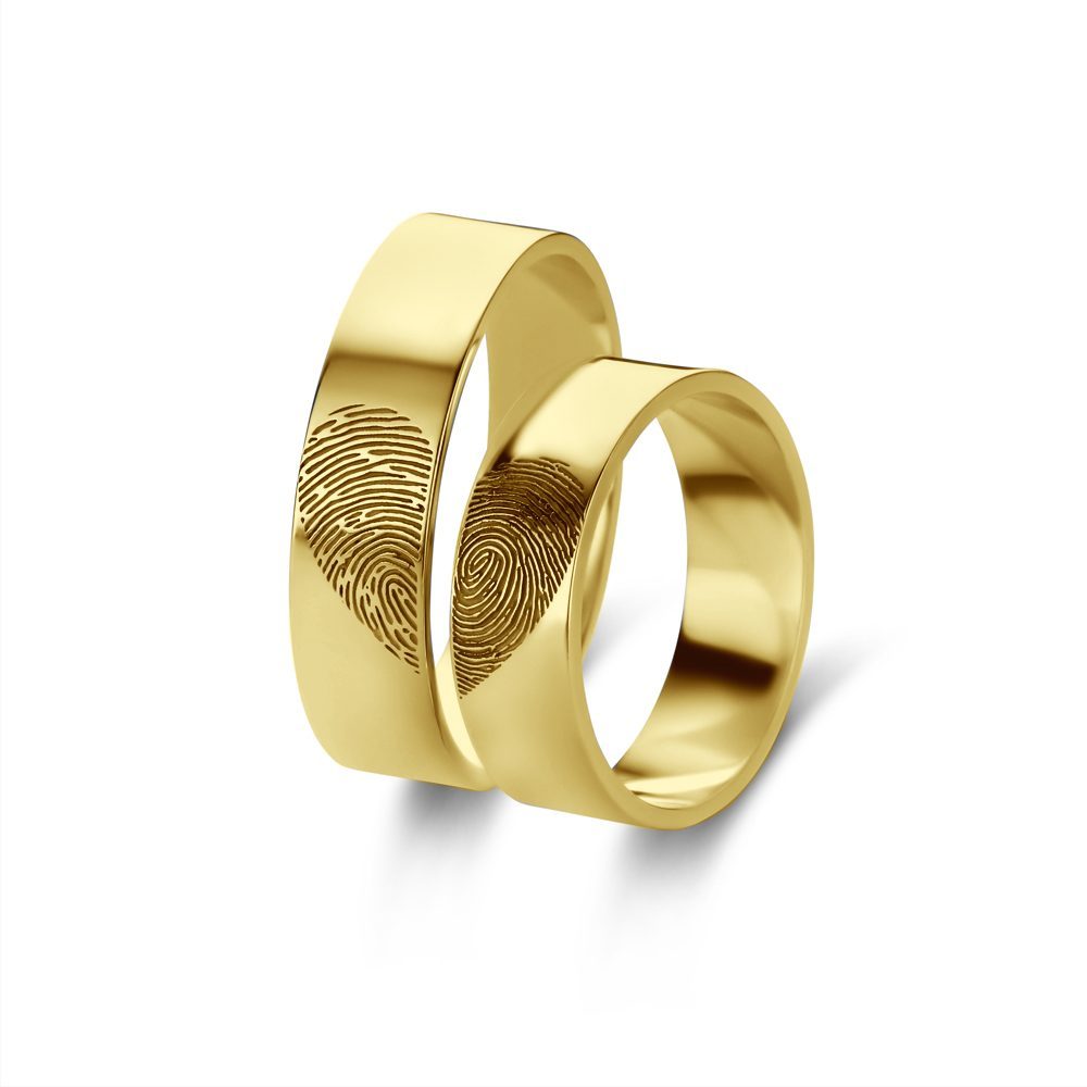 De vingerafdruk ringen zijn gemaakt van 14 karaat goud. De hoogte van de ringen is 6 mm.