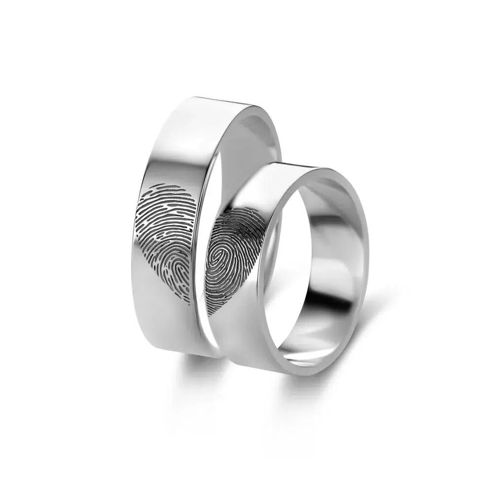 De vingerafdruk ringen zijn gemaakt van 925 sterling zilver. De hoogte van de ringen is 6 mm.