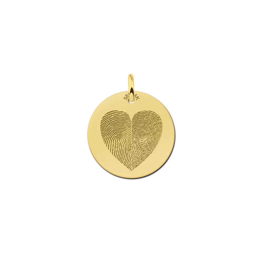 Een prachtige ronde hanger met twee vingerafdrukken in een hartvorm. Met de twee vingerafdrukken wordt het iets unieks.