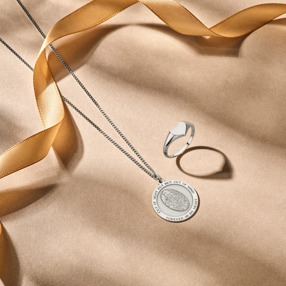 Vingerafdruk sieraden vertellen een zeer persoonlijk verhaal, de vingerafdrukken van twee geliefden vereeuwigd op deze sieraad, samen één. Of een dierbare en tastbare herinnering aan die twee bijzondere mensen. Jij bepaalt het verhaal. Welk verhaal mogen wij voor jou verwerken in dit prachtige vingerafdruk sieraad?