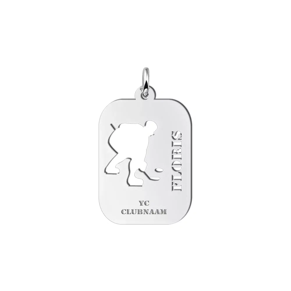 Is ijshockey jouw sport? Dan is dit jouw zilveren ijshockey sportbedel! Compleet je eigen naam en naam van je club.