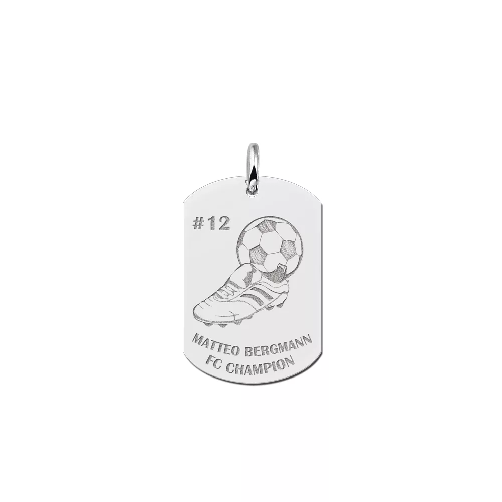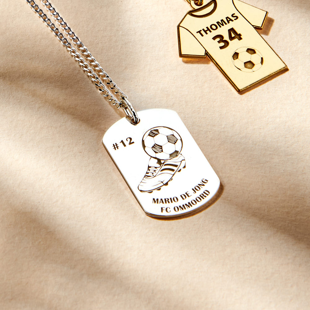 Is voetbal jouw sport of van iemand die je kent? Dan is dit dé zilveren sport hanger! Compleet met stoere dogtag, voetbal design, je eigen naam en je nummer.