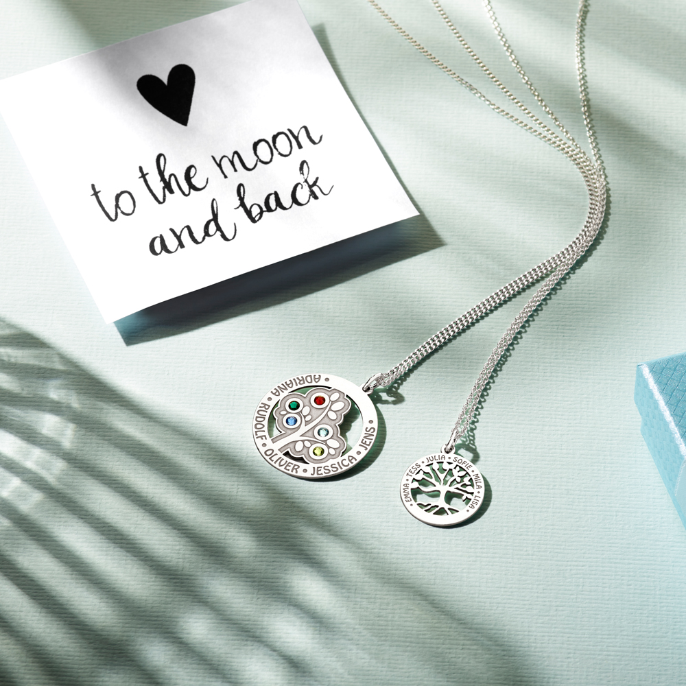 Het is op en top liefdevol om je ouders, partner en kinderen in één stamboomhanger van zilver dicht bij je hart te dragen.