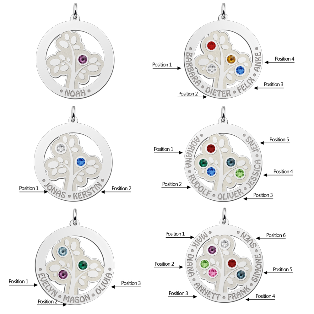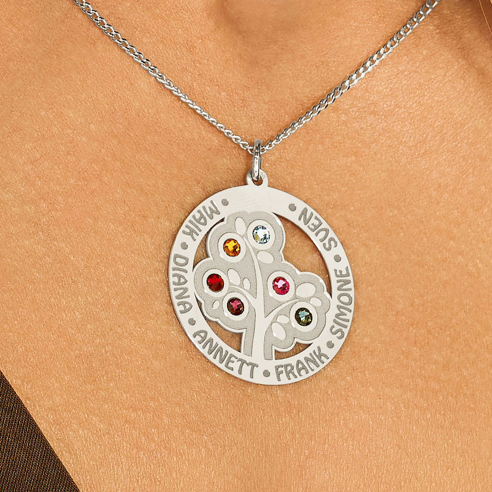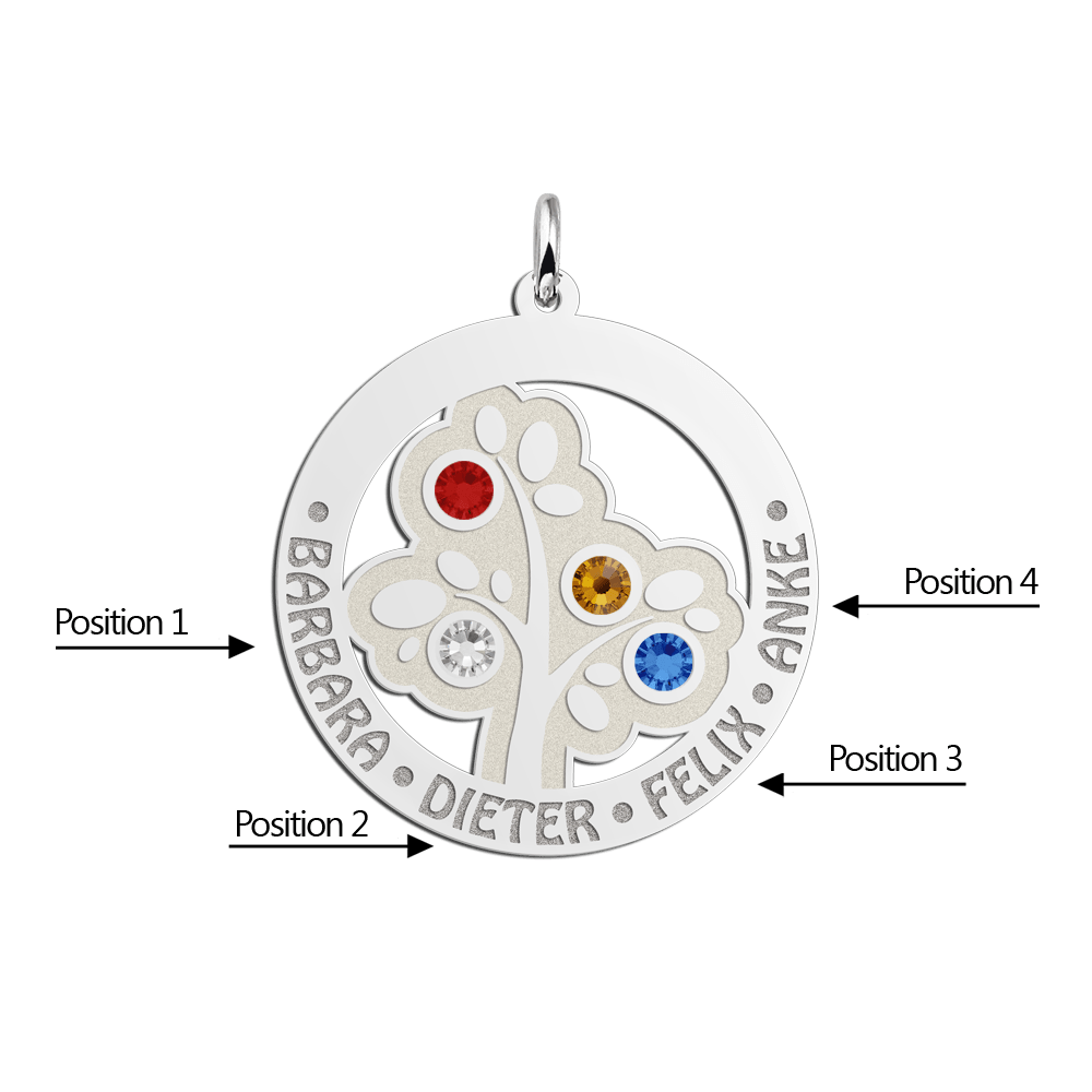 Het fraaie aan deze hanger is, dat je naast ieder zijn naam ook ieder zijn eigen geboortesteen kan laten plaatsen.