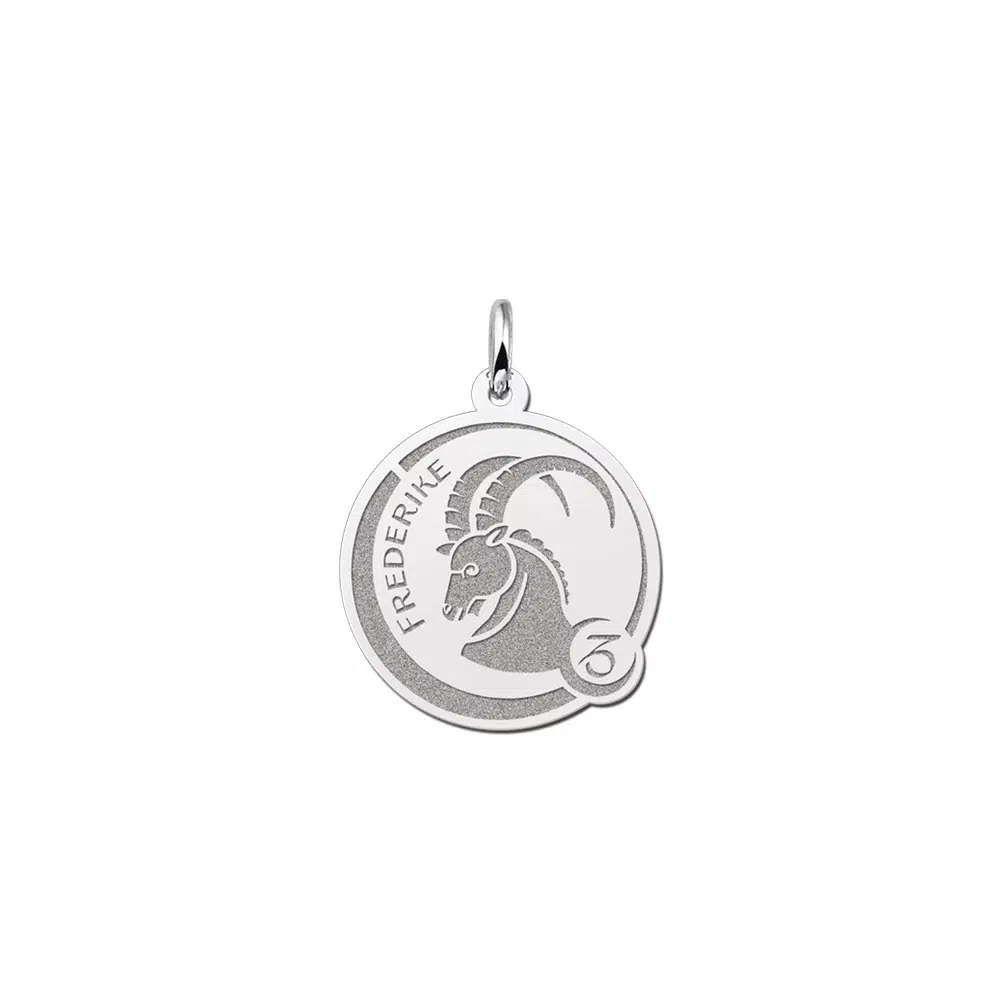 Op deze sieraad is het sterrenbeeld Steenbok gegraveerd. De Steenbok geborene is een mens met een praktische en zakelijke wil.