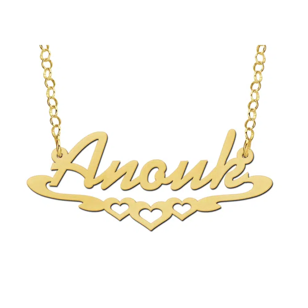Deze vergulde naamketting is een echte eyecatcher en ziet er sierlijk uit. Uniek door jouw eigen naam en sierlijk door z’n vorm. In dit voorbeeld is een gemiddelde letter 19 mm hoog en 8 mm breed. Deze maten zijn uiteraard ter indicatie en afhankelijk van de naam. De dikte van het plaatje is 0, 7 mm. We hebben diverse soorten kettingen in ons aanbod welke allemaal een kettinglengte van 42 cm of 50 cm hebben. Je ontvangt de naamketting in een elegant sieradendoosje. Cadeautje voor jezelf of voor iemand anders?