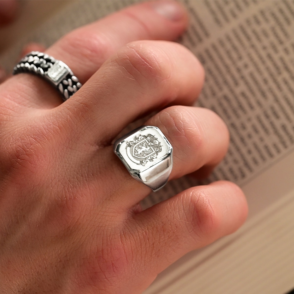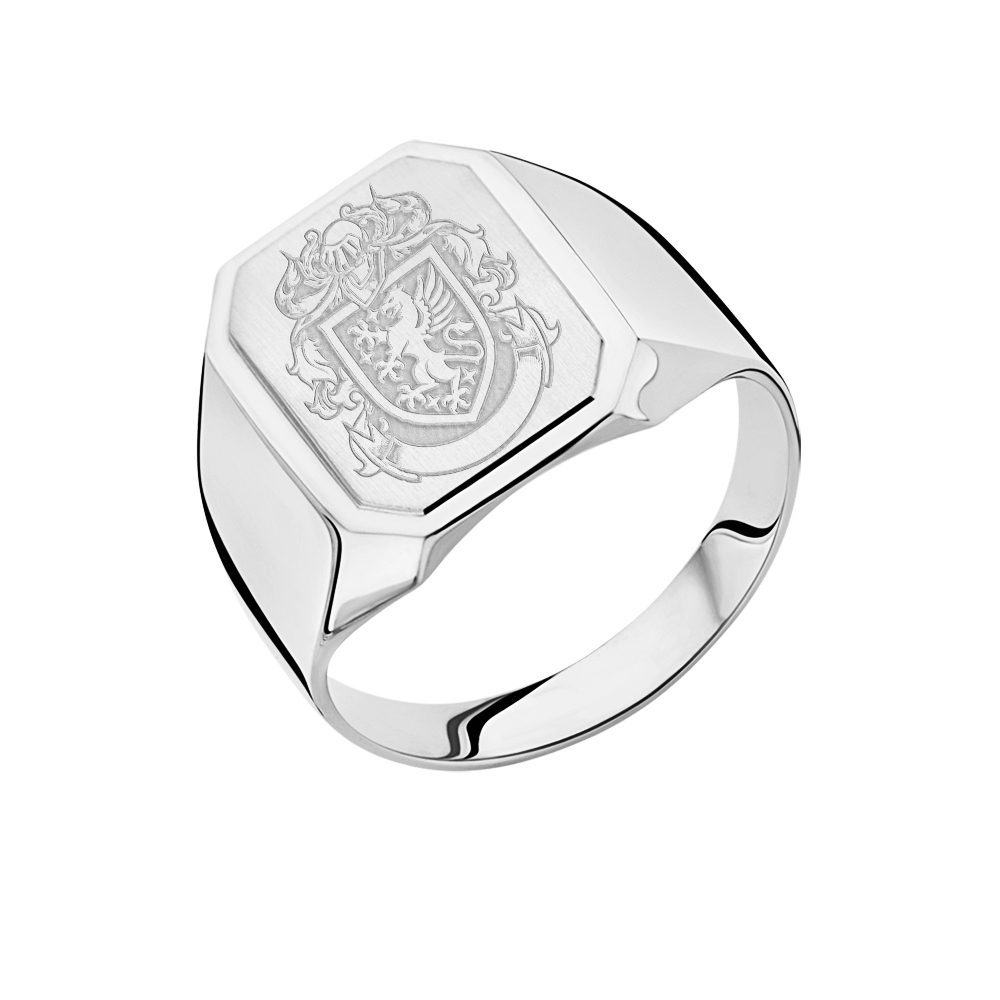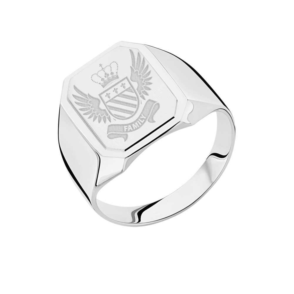 Deze zegelring is gemaakt van 925 sterling zilver. De zegelring is vormgegeven als een achthoek en geeft een matte oppervlakte. De bovenzijde kan worden graveert met een familiewapen. Een speciaal sieraad met een unieke boodschap.