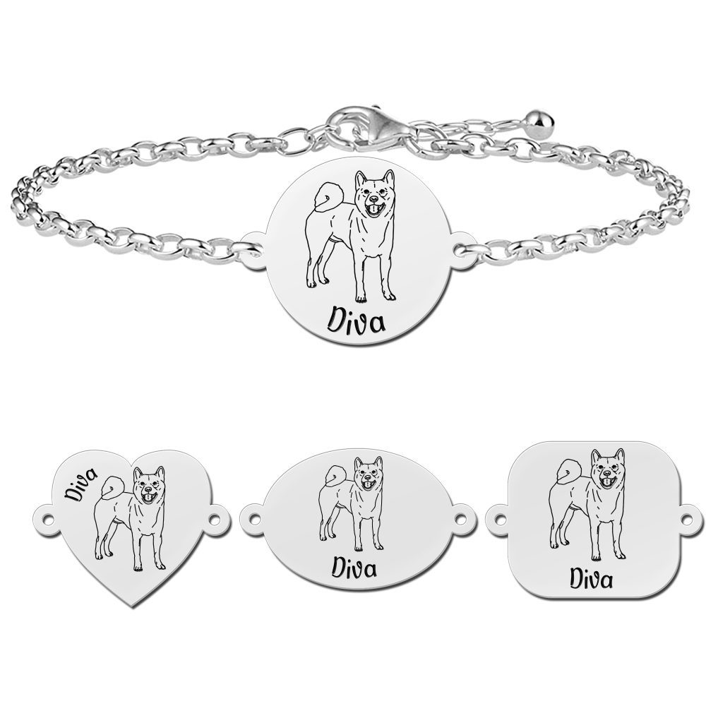 Onze honden armband is een mooi sieraad met een naam verwerking. Graveer de naam van je hond en draag hem zo altijd bij je. De Akita is een trouwe en rustige huisgenoot, maar zijn temperament maakt hem niet tot een van de gemakkelijkste rassen. Het is een evenwichtige hond, met een bijna stoïcijnse uitstraling. Hij is moedig, zelfstandig, eigenwijs en intelligent, met een groot jachtinstinct. Hun mooie vacht valt erg op wat deze dieren prachtig maakt.