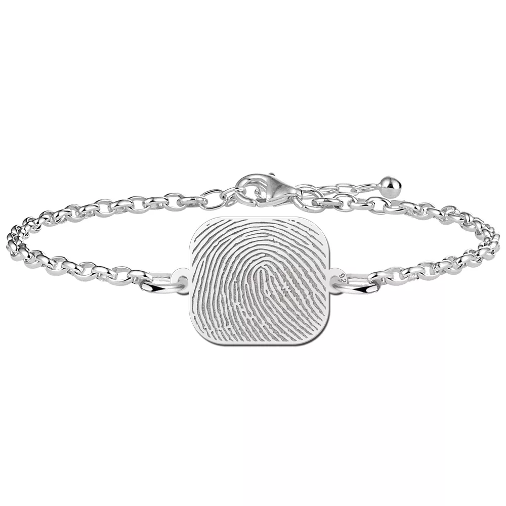 Een van onze meest persoonlijke sieraden is deze prachtige vingerafdruk armband met rechthoek. Doordat de vingerafdruk van elk persoon helemaal uniek is, kun je met een vingerafdruk sieraad écht een deel van je geliefde met je meedragen. Zo is een armband met vingerafdruk een prachtig gedenksieraad ter nagedachtenis aan een overleden dierbare. Maar de armband is bijvoorbeeld ook perfect voor de vingerafdruk van je vriend/vriendin of kindje, om te laten zien hoeveel zij voor jou betekenen. Persoonlijker kan niet!