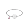 Het armbandje is verkrijgbaar in de lengtes 11cm, 13cm of 15cm. U kunt het armbandje laten voorzien met een bedeltje. Dit bedeltje wordt aan de linkerzijde van het rondje bevestigd aan het armbandje. U heeft de keuze uit diverse bedeltjes.