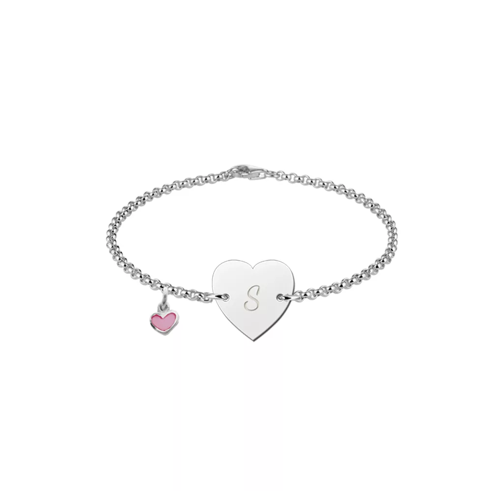 Dit baby armbandje van zilver heeft de vorm van een hartje en kan gegraveerd worden met een letter. Het armbandje is gemaakt van echt 925 Sterling zilver.
