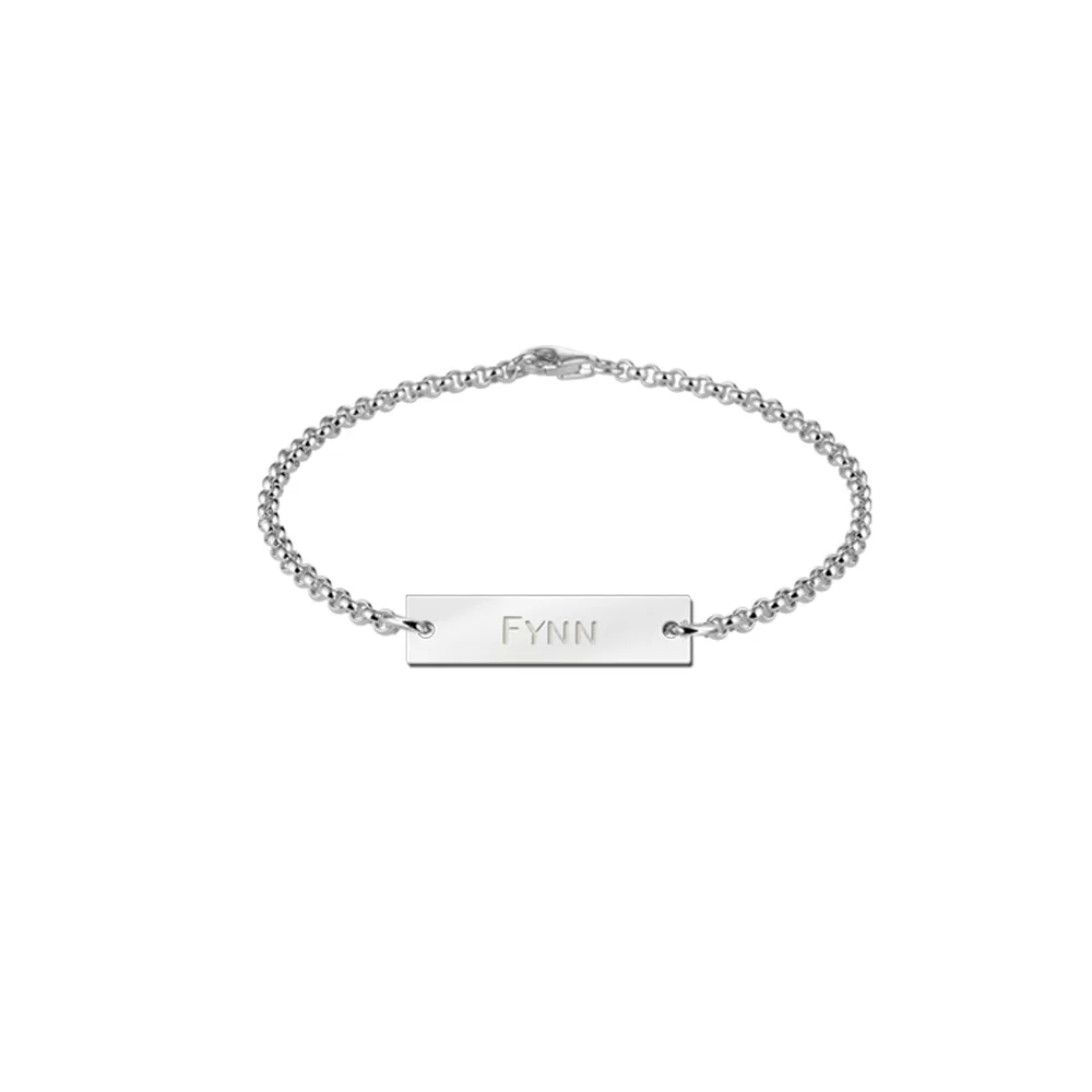 Deze zilveren baby armband is gemaakt van écht 925 Sterling zilver en kan gepersonaliseerd worden met een naam of datum. De armband is ook perfect geschikt als cadeautje.