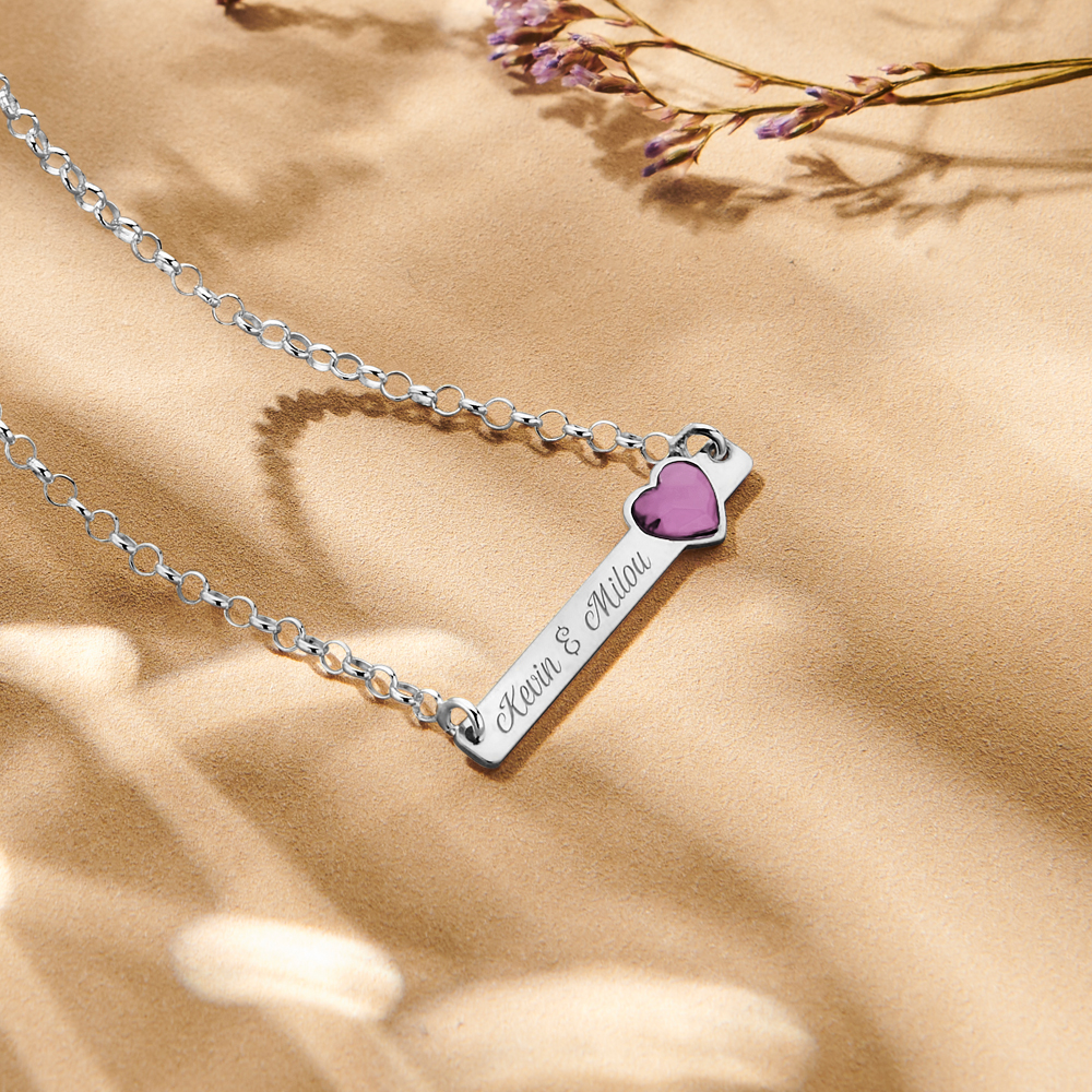 Vereeuwig de band tussen jou en een dierbare in een bar ketting. De bar ketting is afgewerkt met een kubieke zirkonia hartsteen in vier verschillende kleuren.