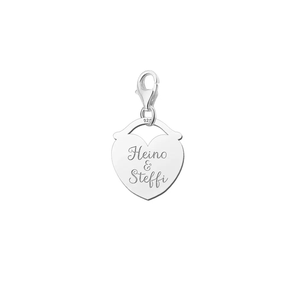 In dit zilveren hart bedeltje is plaats om de door jou opgegeven namen in sierlijke letters te graveren.