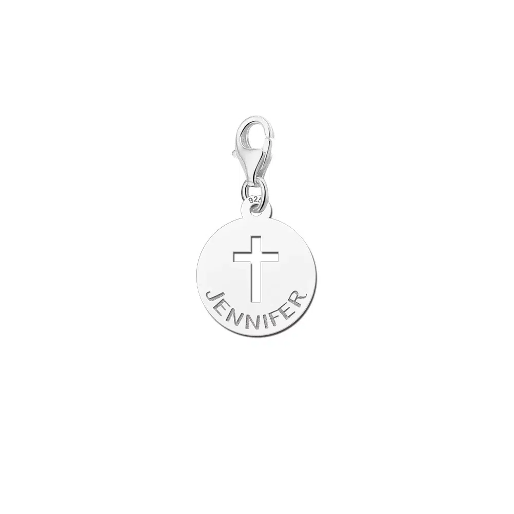 Dit fijne kruishangertje is gemaakt van 14 krt goud en is 14mm in het rond. De dikte van dit fraaie hangertje is 0,4mm dik en tevens is de charm voorzien van een karabijnhaakje waardoor hij overal makkelijk aan te bevestigen is. In deze hanger graveren wij de naam of tekst die jij aan ons doorgeeft. Mooi als cadeau voor een Eerste Communie of als gedenksieraad!