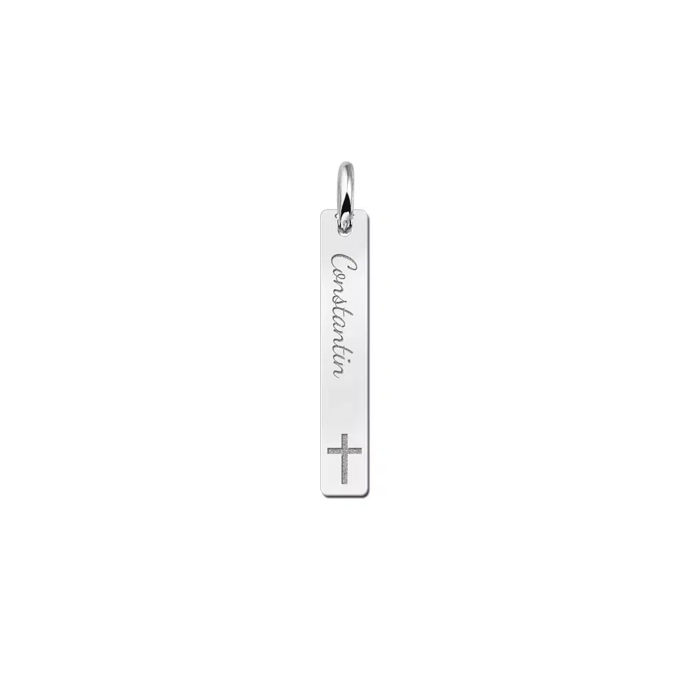 In dit zilveren communie bar hanger is een naam prachtig gegraveerd. Ken jij iemand die zijn of haar eerste communie zal ervaren? Dan is deze zilveren communie-hanger een geweldig cadeau om te geven! Vooral, omdat de hanger gepersonaliseerd kan worden met een naam. De naam van degene die deze speciale gebeurtenis ervaart natuurlijk! En met maximaal 12 tekens is bijna elke naam mogelijk! Deze zilveren communie-hanger is gemaakt van de hoogste kwaliteit 925 sterling zilver, waardoor hij heel lang mooi blijft. Het communiekruis is ongeveer 4 x 25 mm groot en heeft een dikte van 0, 7 mm. Vergeet niet om een bijpassende zilveren ketting te bestellen, zodat het sieraad meteen kan worden gedragen!