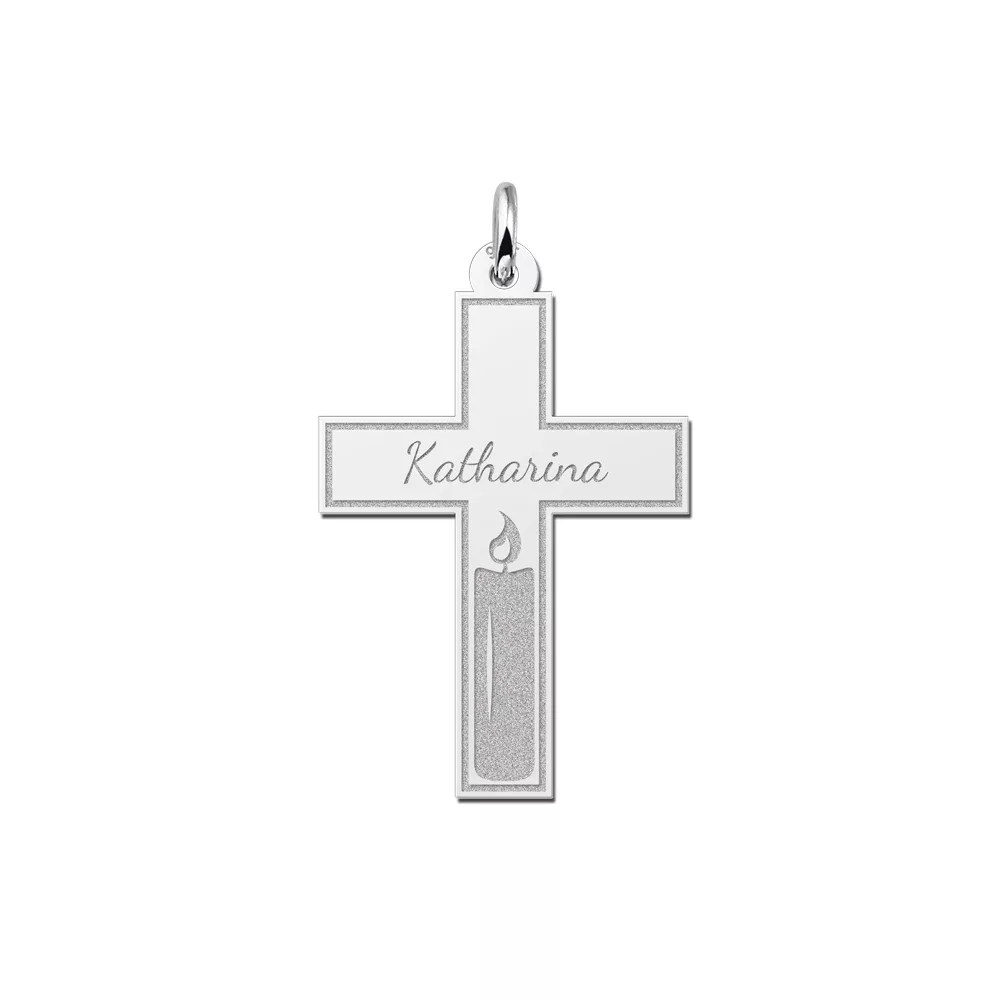 In dit zilveren communie-kruis is een kaars prachtig gegraveerd. De kaars heeft een speciale betekenis in religieuze gemeenschappen en gezinnen en wordt vaak verlicht tijdens speciale evenementen. Ken jij iemand die zijn of haar eerste communie zal ervaren? Dan is deze zilveren communie-hanger een geweldig cadeau om te geven! Vooral, omdat de hanger gepersonaliseerd kan worden met een naam. De naam van degene die deze speciale gebeurtenis ervaart natuurlijk! En met maximaal 12 tekens is bijna elke naam mogelijk! Deze zilveren communie-hanger is gemaakt van de hoogste kwaliteit 925 sterling zilver, waardoor hij heel lang mooi blijft. Het communiekruis is ongeveer 25,5 x 18,5 mm groot en heeft een dikte van 0,7 mm. Vergeet niet om een bijpassende zilveren ketting te bestellen, zodat het sieraad meteen kan worden gedragen!