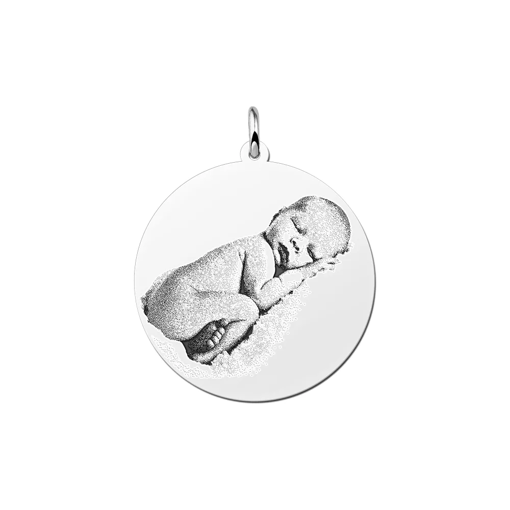 Laat je herinnering aan iets of iemand tot leven komen met deze ronde, zilveren foto hanger. De foto hanger heeft een diameter van 30 millimeter en een dikte van 0,7 millimeter. Aan jou de keuze wie een plaats op deze fotohanger verdient. Bijvoorbeeld een geliefde, een overleden dierbare, je huisdier of je kind.