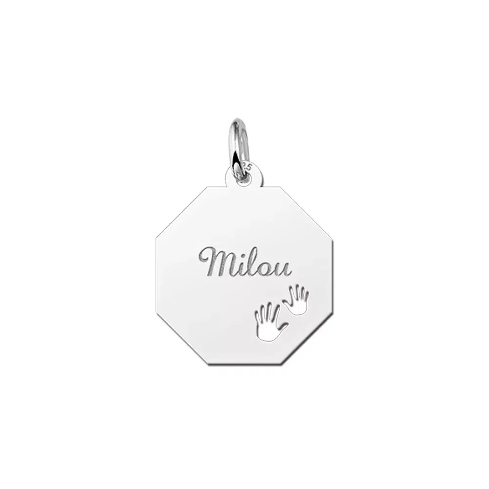 Wat schattig is dit toch! Een graveerplaat van zilver met twee handjes en de naam gravure van je kindje erin. Dat is wel heel speciaal! Ook is dit een geweldig cadeau om te geven aan een pas bevallen moeder. Een graveerplaat met de naam van haar pas geboren kindje, door ons erin gegraveerd. Wat een schitterend cadeau! De doorsnede van het plaatje is 17 x 17 mm Vergeet niet om er een bijpassende ketting bij te bestellen!