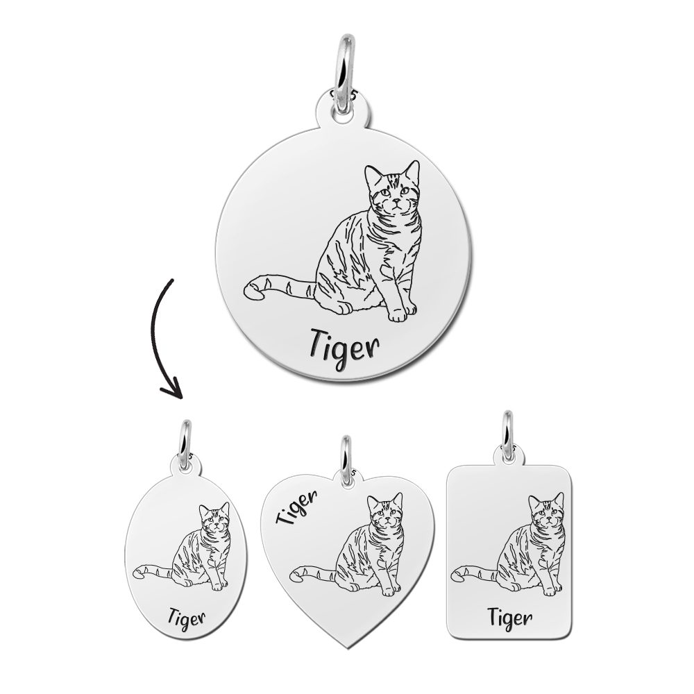 Onze katten hanger is een mooi sieraad met een naam verwerking. Graveer de naam van je kat en draag hem zo altijd bij je. De Amerikaanse korthaar is een echte gezelschaps kat! Ze zijn makkelijk in omgang, spelen graag met je en hechten zich aan alle mensen in huis. Amerikaanse kortharen zijn stevige, sterke, middelgrote katten waardoor ze heel goed zijn in jagen. Ze zijn vaak gestreept en komen in heel veel verschillende kleuren voor, maar het meest in wit, grijs, zwart, rood en bruin.