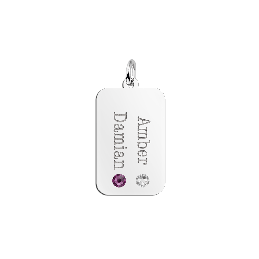 In deze hanger van zilver kun jij je twee namen laten graveren met daarbij twee geboortestenen.