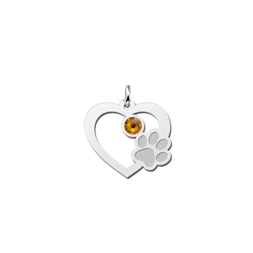 Zilveren hart met poot en steentje