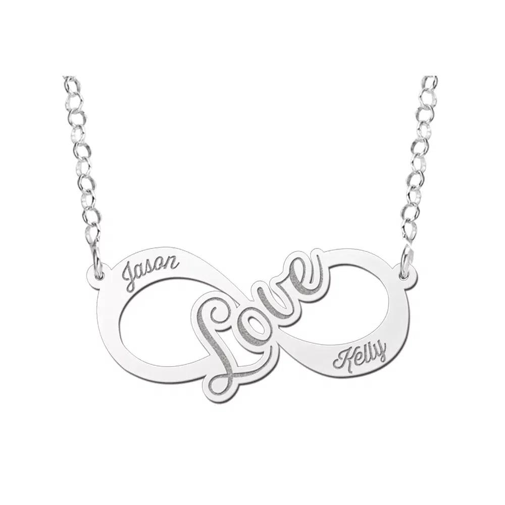 De zilveren infinity ketting love is een prachtige ketting. Deze infinity ketting love staat symbool voor de liefde tussen jou en een dierbare. Dit kan bijvoorbeeld je vriend of vriendin zijn maar natuurlijk ook iemand anders. Laat de liefde voor je dierbare zien en draag deze ketting. Een bijzonder sieraad met een bijzondere betekenis. De lengte van de ketting is 42 cm. De infinity hanger is 38 x 20 mm groot.