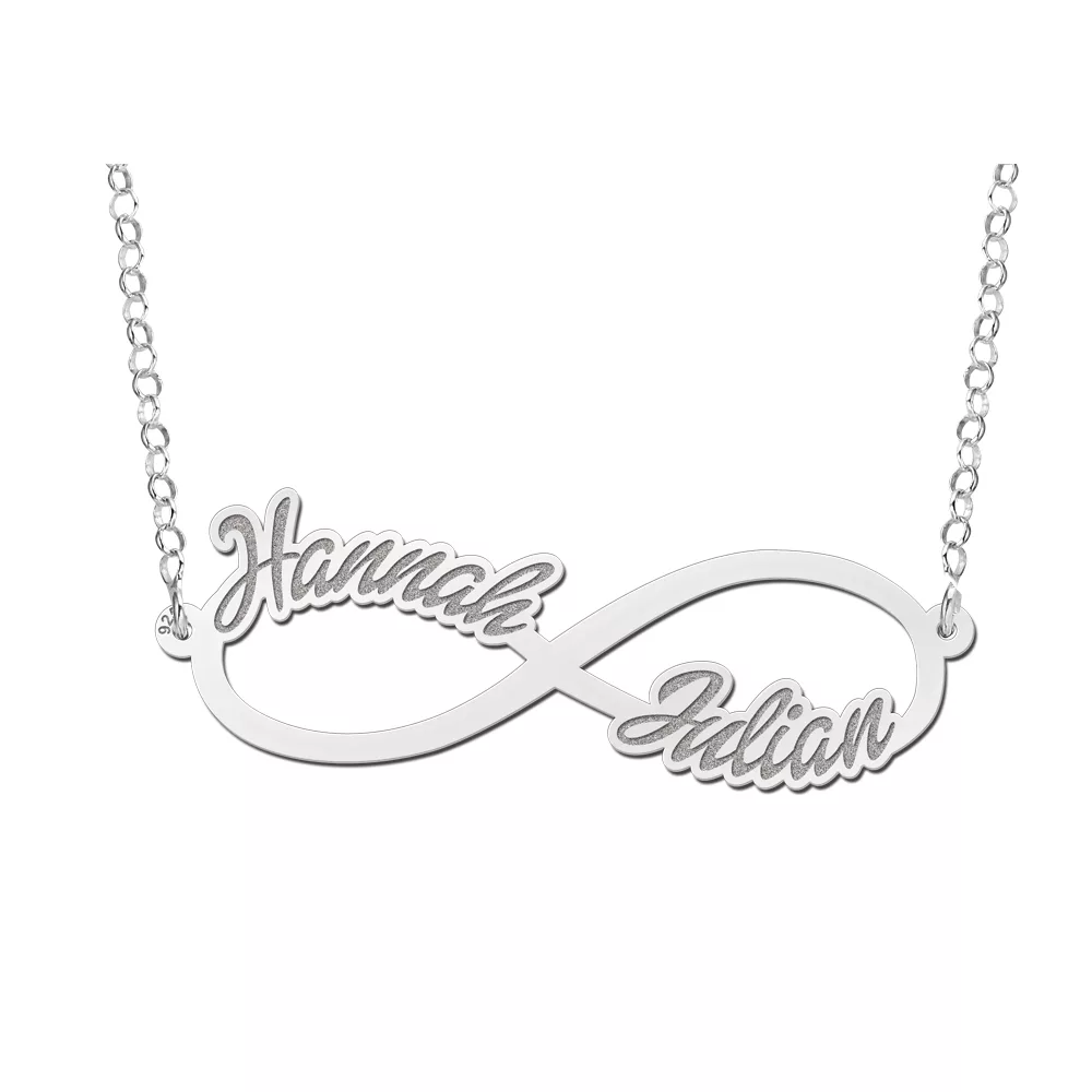 Op zoek naar een 925 Sterling zilveren infinity ketting waarin je twee namen kwijt kunt? Bekijk dan eens deze sierlijke ketting. Het infinity teken heeft een afmeting van 45 mm x 12 mm en een dikte van 0,7 mm. Vergeet niet om een passende ketting erbij te bestellen; je kunt uit diverse soorten kettingen en kettinglengtes kiezen. Is het een cadeautje? Komt goed uit! Je ontvangt de infinity ketting in een schattig sieradendoosje.